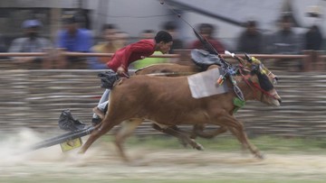 Seorang anggota Brimob menjadi korban pembacokan saat bertugas mengamankan jalannya pertandingan final karapan sapi di Bangkalan.
