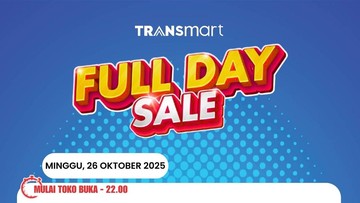 Transmart kembali menggelar program belanja hemat Full Day Sale Minggu, 26 Oktober 2025. Mulai toko buka hingga pukul 22.00 WIB.